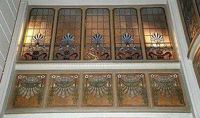 - verrière Art Nouveau, Cheminée à décor Art nouveau, plafond décoré par Privat Livemont